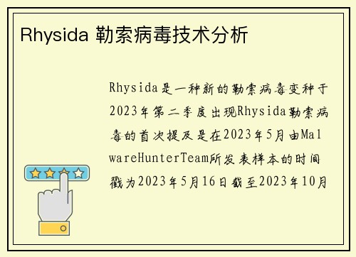 Rhysida是一种新的勒索病毒变种,于2023年第二季度出现。Rhysida勒索病毒的首次提及是在2023年5月由MalwareHunterTeam所发表样本的时间戳为2023年5月16日。截至2023年10月12日,该勒索病毒的泄露网站包含超过50家被攻击的各类机构名单,包括政府、医疗和IT行业。